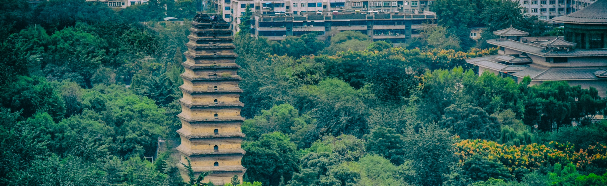 La Gran Pagoda del Ganso Salvaje se encuentra en el Templo Da Ci'en, fue construida en el año 652 durante la dinastía Tang y lo utilizaron como almacén para guardar las obras y elementos budistas traídas de la India por el monje maestro Xuanzang, quien contribuyó mucho al desarrollo del budismo en la antigua China, y es modelo del personaje de la Gran obra “Viaje al Oeste”. Es una pagoda cuadrada de ladrillos por lo que no sufrió demasiados daños durante los terremotos ocurridos en la historia, con 5 veces de reconstrucción ahora tiene 7 pisos con una altura de más de 60 metros. Por las escaleras en espirales podremos llegar a la cima donde se domina una vista panóramica de la ciudad. Cabe mencionar, los pintores de la dinastía Tang habían creado muchos murales dentro del edificio y por los dinteles de las puertas en forma de arco de cada piso, ahora podremos encontrar algunos rastros. El Museo de Historia de Shaanxi se encuentra en el lado noroeste de la Gran Pagoda del Ganso Salvaje. Construido en el año 1991, ha reunido más de 1.7 millones de reliquias culturales invaluables, incluidos bronces, cerámicas, artículos de oro y plata, y murales de tumbas de la dinastía Tang, el tiempo de las reliquias se extiende a más de un milllón de años. Ocupa una superficie de 65 000 metros cuadrados, la parte externa es una buena muestra del estilo arquitectónico de la dinastía Tang durante el período próspero. Desde la apertura, se han organizado muchas exposiciones de distintos temas. Se ofrece el servicio de explicación, con el cual podremos conocer el proceso de desarrollo desde los tiempos inmemoriales hasta el año 1840 de China.