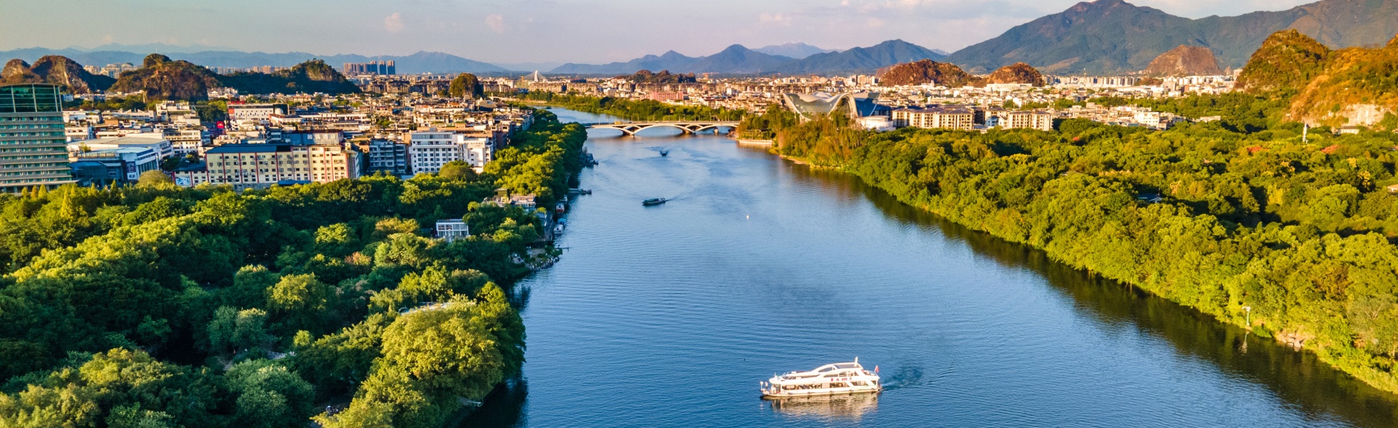 Pronto empezará la actividad más especial de nuestra ruta, el Crucero por el Río Li, como su nombre lo indica, podrá tomar el crucero para mirar los paisajes a lo largo del río. La distancia total es de 83 km, gastará 4 horas estando ahí. Se dice que el río tiene 99 bahías, hay una leyenda sobre este dicho: Hace mucho tiempo, había un gran río de treinta y seis pies de ancho desde Guilin hasta Yangshuo, que regaba los cultivos de ambas orillas. Pero un año, muchas piedras cayeron de algún lugar y llenaron el río.