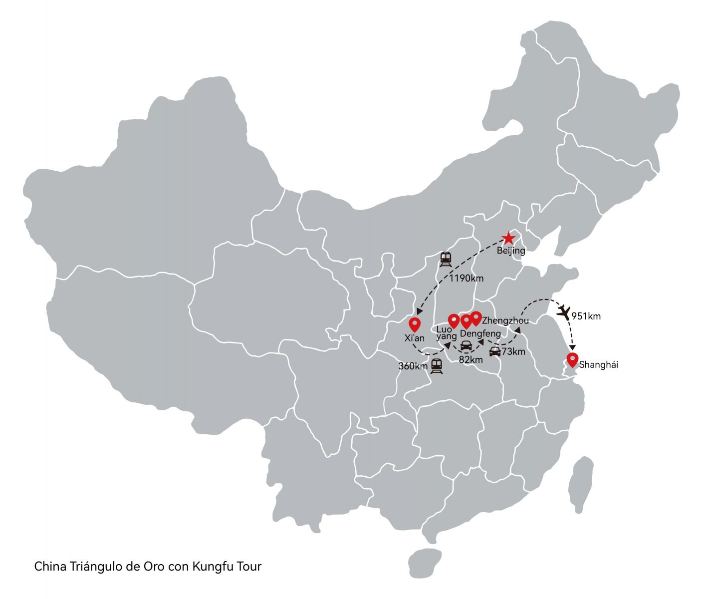 Con este Kungfu tour de 10 días, explorará el misterio de este arte milenario en su cuna, el Templo de Shaolin, sitio que juega un papel importante en el desarrollo del budismo, allí verá el Kungfu más auténtico actuado por los maestros monjes. También tendrá la oportunidad de aprender unos nuevos movimientos en una escuela de arte marcial en Dengfeng y sentir tranquilidad tanto corporal como mental practicando el Taichi en el Templo del Cielo de Beijing. Además, descubrirá escenarios inigualables desde ciudades cargadas de historia y leyendas en la capital actual Beijing y la antigua Xi’an, hasta la gran metrópolis de Shanghái que muestra el rápido desarrollo. Navegará en el largo río de historia de este país. Las experiencias que vivirá con este China Triángulo de Oro con Kungfu Tour serán de lo más emocionante e interesante, y que sin duda, le atraparán e impresionarán.