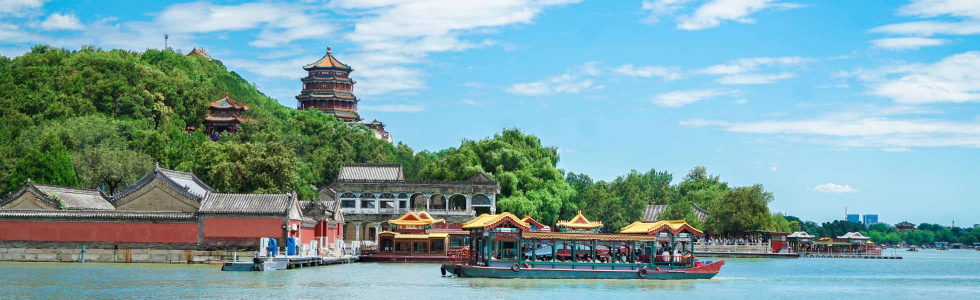Después del almuerzo especial de Beijing, visitaremos el Palacio de Verano, que es el último jardín imperial de China, fue llamado como el Jardín Qingyi antes. En la antigüedad, los emperadores solían ir allí para escapar del calor en verano y divertirse. Dentro del Palacio de Verano, hay un corredor de 728 metros de longitud, que es el corredor más largo del mundo. Fue incluido en el "Guinness World Records" en el año 1992. Hay más de 14 000 pinturas coloridas en cada viga del pasillo. Y no hay dos cuadros iguales. El contenido de las pinturas son en su mayoría paisajes, flores y pájaros, y tramas de las cuatro novelas clásicas chinas. Los pintores condensaron miles de años de historia y cultura china en este largo corredor.