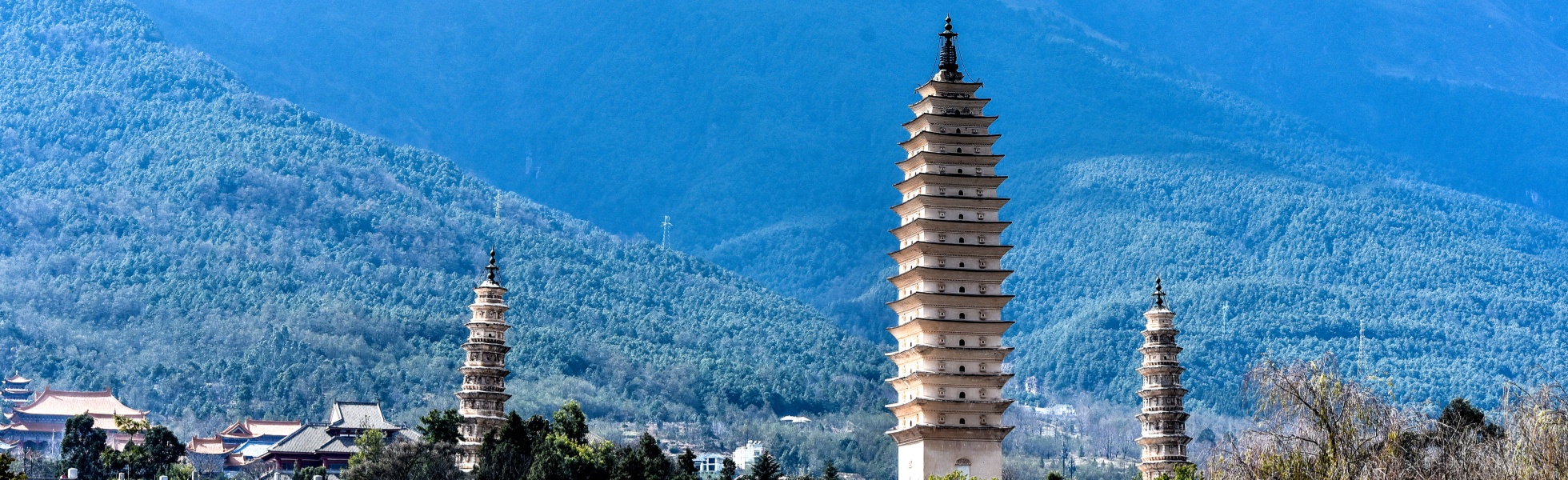 Empezaremos nuestro viaje en Dali por las Tres Pagodas del Templo Chongsheng, compuestas de una grande, dos pequeñas y tres pabellones. Fueron construidas entre el 833 y 840. ¿Cómo construyó la gente las tres pagodas hace más de mil años? La gente siempre ha dicho que se tuvo que "apilar tierra" y "cavar tierra " para construirlas, pero el uso de este método para construir torres es solo una suposición. De 1978 a 1981, la Administración Estatal de Patrimonio Cultural asignó fondos para reparar y fortalecer las tres pagodas durante tres años. Fue durante esta reparación y refuerzo que se encontraron muchos agujeros redondos en la pagoda. Según la investigación de los expertos, estos agujeros redondos fueron sobrantes de la construcción y de los andamios, es decir, de hace mil años, lo cual indica que desde hace tiempo la gente de Dali ha dominado este método de construcción muy moderno: andamios para construir edificios de gran altura.