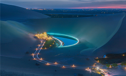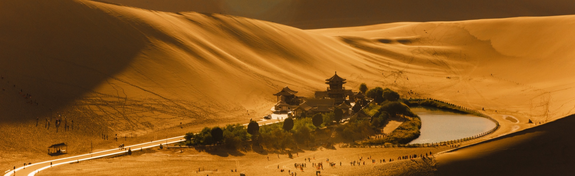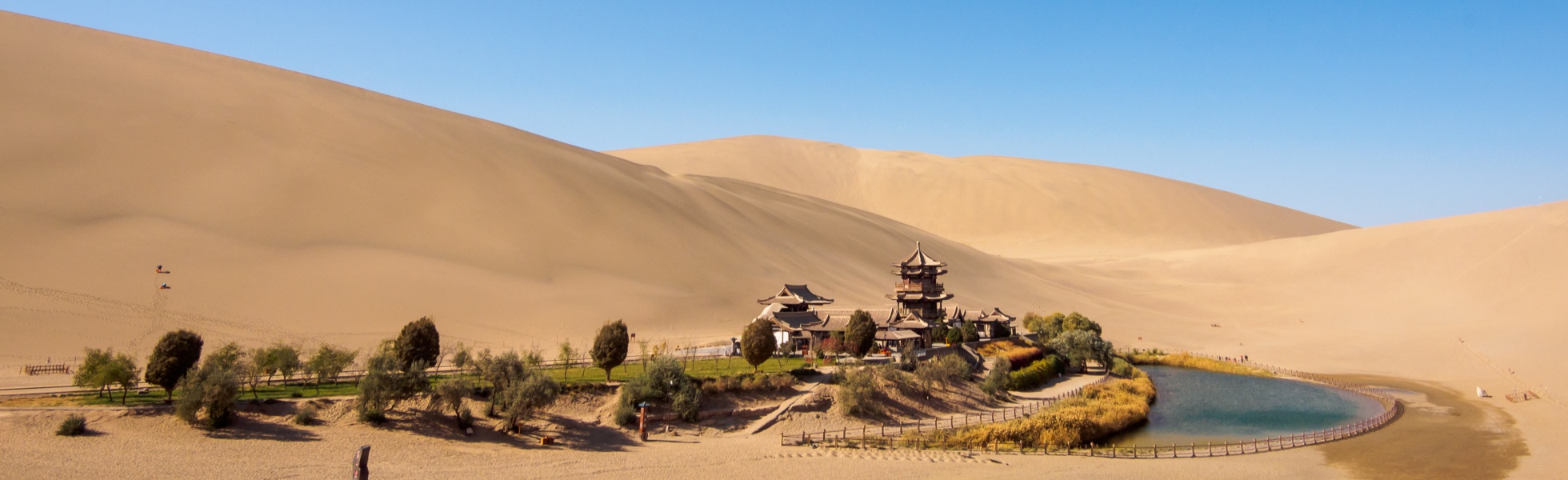 Luego del breve descanso, partiremos para la Montaña de Eco de Arena y el Lago de Crescent, se ubican a 5 kilómetros de distancia del sur de Dunhuang. La Montaña de Eco de Arena está formado de arenas de 5 colores: el rojo, el amarillo, el verde, el blanco y el negro. Tiene 40 kilómetros de este a oeste, y 20 kilómetros de norte a sur, cuya cumbre principal tiene una altitud sobre el nivel del mar de 1715 metros. Es llamada así por el sonido de la arena cuando hace viento, que se oye como una canción rítmica elegante. El Lago del Crescent está rodeado por la Montaña de Eco de Arena, se ve como una luna nueva, por lo que tiene ese nombre. Hay cuatro curiosidades aquí: la forma de crescent se ha mantenido durante miles de años; la fuente se formó aún en el inhóspito desierto; está rodeado por la montaña de arena sin ser inundado. Pruebe los ricos platos hecho de los “viejos” peces en el estanque antiguo.