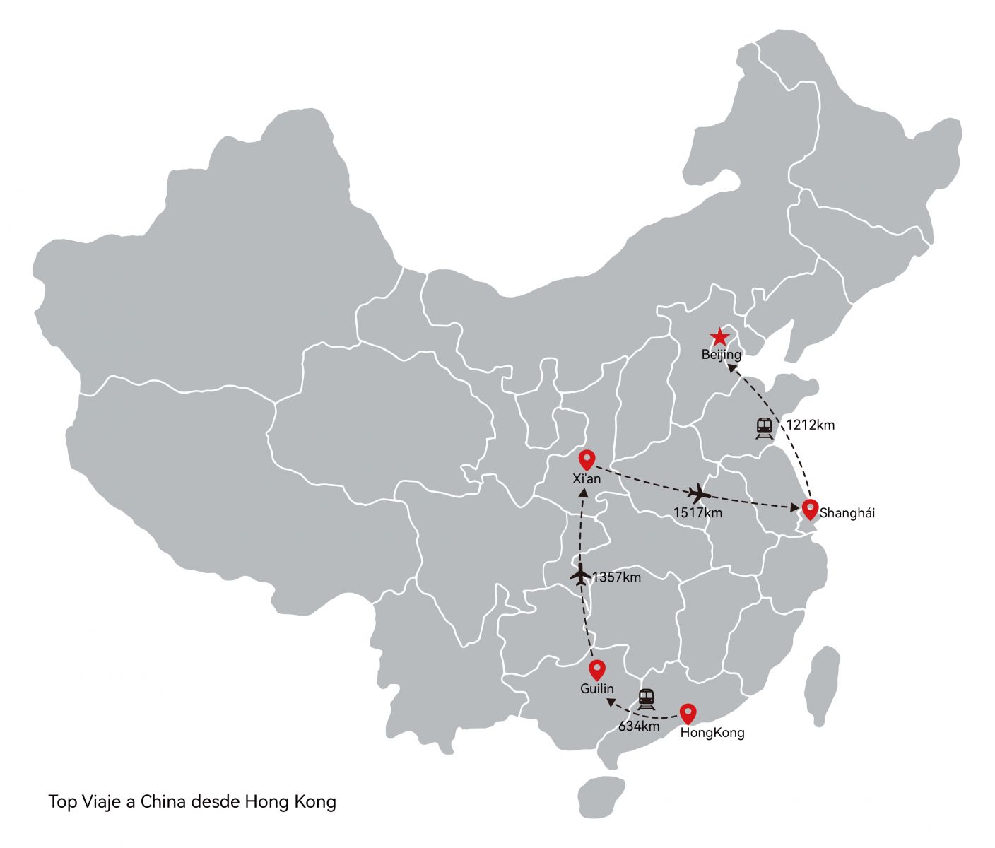 Esta vez le invitamos a un tour diferente a los demás, empezaremos nuestro viaje desde Hong Kong, la ciudad que se hizo muy famosa por su época colonial inglesa. Luego vamos al suroeste del país, Xi’an, la ciudad más atractiva de su región, para sentir su gran historia y probar la comida tradicional, tampoco podemos dejar de visitar a Shanghái, una verdadera metrópoli moderna y multicultural, al final regresaremos a Beijing, para visitar los lugares turísticos más conocidos de esta ciudad como la Ciudad Prohibida, la Gran Muralla China, el Templo del Cielo, etc., y desde allí daremos por terminado nuestro tour.