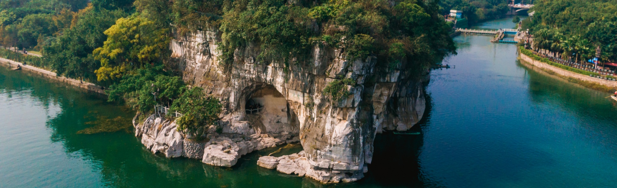 Luego, visitaremos la Colina de Trompa de Elefante, anteriormente conocida como Montaña Lishan, se encuentra en la zona urbana de Guilin. Tiene el nombre por su apariencia que se asimila a un elefante parado junto al río bebiendo agua. Es conocido como el símbolo de Guilin. Cuenta la leyenda que hace muchos años, las siete hadas venían al mundo en secreto para admirar la belleza de este lugar. Una de las hadas vio que las personas que vivían en esta tierra a menudo sufrían inundaciones, por lo que tomó el elefante del Emperador de Jade de este lugar sin permiso para ayudar a la gente a dragar el río. Después de enterarse de esto, el Emperador de Jade ordenó al hada regresar a la Corte Celestial y convirtió al elefante en una montaña de piedra y lo reprimió con una espada para que nunca pudiera regresar a la Corte Celestial. La torre en la montaña es la empuñadura del Emperador de Jade. Para agradecer al elefante, la gente nombra la montaña como la Colina de Trompa de Elefante.
